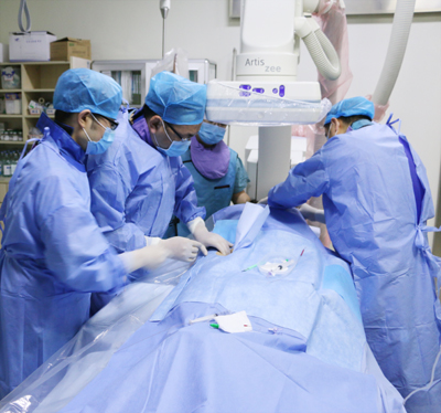 导管射频消融术是治疗心律失常的方法之一。该手术是在数字减影血管造影机的监测下,通过穿刺血管,把电极导管插入心脏,先检查确定引起心动过速的异常结构的位置,然后在该处局部释放高频电流,在很小的范围内产生很高的温度,通过热效能,使局部组织内水分蒸发,干燥坏死,达到治疗目的。该方法集合了射频消融、DSA介入技术、血管成像技术等多种医疗手段,对于各类型生理电异常引起的心律失常都有极佳疗效。