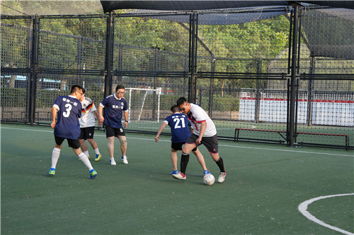 本次比赛分为行政队、医务队、南院临床队、北院临床队4支代表队、30余人参赛,比赛采用5人制足球赛制,上下半场各20分钟,中场休息5分钟,实行淘汰晋级制,抽签分组决定比赛顺序。 随着裁判员的一声哨响,球员们立刻进入了激动的比赛状态,个个精神抖擞,尽情释放。盛夏的骄阳丝毫没有影响到球员们参赛的热情,滴滴汗水,矫健的步伐,挥洒在绿茵场上,滚动的足球,洋溢的笑脸,成为球场上一道最靓丽的风景线。场上激情四射,场下呼喊喝彩声不断,赛场气氛十分热烈。