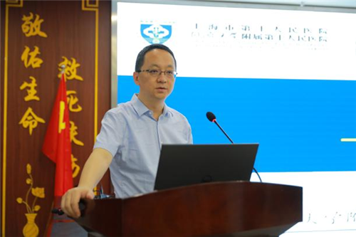 为进一步推进我院与上海市第十人民医院深化交流合作、携手促进共同发展,7月17日,我院与上海市第十人民医院合作推进会在行政办公区三楼会议室召开。上海市第十人民医院副院长李颖川、左克强处长、余震教授,同济大学陈锋教授、孙中仪、曹文涛两位博士以及我院党政领导班子成员、全院中层干部出席会议。会议分为博士后工作站揭牌仪式、专家学术讲座、深入科室教学查房等几个方面进行。