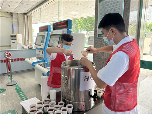 沁人心脾的绿豆汤,不仅在炎热的夏日给大家带来了一丝凉意,也缓解了看病就诊的焦躁情绪。“没想到来医院看病还能喝上绿豆汤,你们医院太贴心了!”“谢谢!你们服务的真周到!”就诊的市民们纷纷表达着感谢。