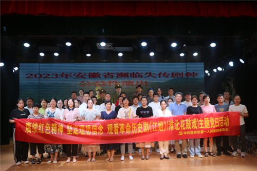 7月28日晚,磅礴的大雨没有阻挡住我院党员们接受革命历史教育的热情,宿州市埇桥区花鼓戏剧团小剧场内,由我院党委组织的60余名党员集中观看了淮北花鼓戏大型革命历史剧《江姐》,大家重温党的历史,汲取奋进力量。