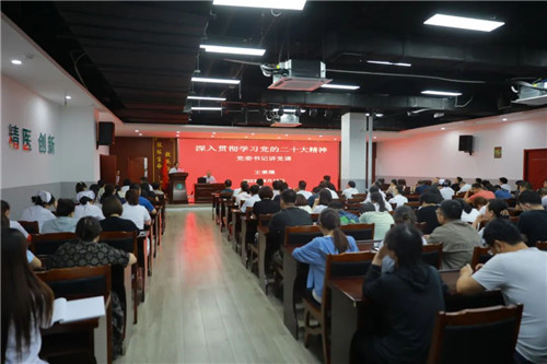 院党委书记王秉璞,从深刻认识“两个确立”的重要性、“四个自信”-文化自信、以创建促医院高质量三个方面进行了宣讲。