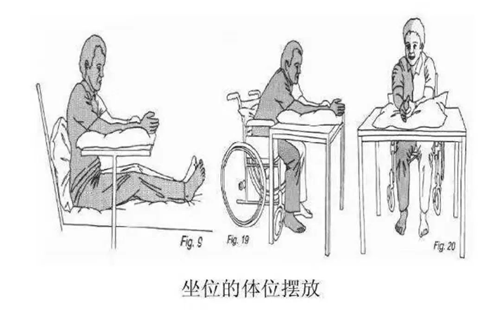 3、坐位时,在患肢前方放置一平桌,将患肢托起避免自然下垂。