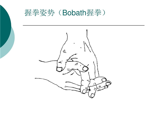 bobath握手肩关节前屈训练。Bobath握手方法是神经发育促进技术当中一种常用的方法,广泛用于脑卒中的临床康复治疗,作为一种经典的反射抑制治疗手法,一直沿用至今,其有效性、实用性毋庸置疑。具体方法是双手交叉相握,掌心相对,偏瘫手拇指置于健侧手拇指之上;之后在无痛范围内进行肩关节前屈训练。可以改善肩部血液循化、增加肌肉张力、增加肩部运动,改善肩痛。