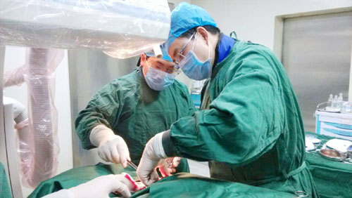 曾被诊断为“冠心病、心衰”45岁的郭先生近一年出现夜间阵发性呼吸困难,不能平卧。去多家医院就诊后诊断为“扩张型心肌病、完全性左束支传导阻滞、心衰”,今年上半年反复住院治疗。据了解,该病是因患者左右心室收缩不协调、心脏返流严重所致。除了施行外科的心脏移植手术外,目前尚无特殊治疗方法,采用传统药物保守治疗仅能延缓病情进展。而心脏移植不仅供体难找,而且创伤性大,费用高昂。心内科主任户学敏建议采用国际先进的,技术难度较高的心脏再同步治疗法,为郭先生植入三腔起博器加埋藏式心脏电复律除颤仪。在多次病例讨论,充分的术前准备,制定周密的手术方案基础上,5月28日,经过近2个小时的紧张战斗,永久性三腔起搏器置入术获得成功。术后患者恢复良好,心功能改善。