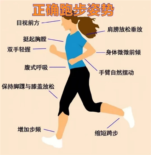 首要原则是建立正确的跑步姿势:上半身稍向前倾,头位于躯干正上方,两肩稍提,两肘屈成90度,两手半握拳;跑动中,两臂放松前后自然摆动,大腿积极前抬,小腿自然放松,依靠大腿的前摆动作,带动髋部向前上方摆出,以脚后跟先着地后迅速过渡到全脚掌着地,后蹬充分有力,步幅大而有弹性,同时配合均匀、细长的呼吸节奏。