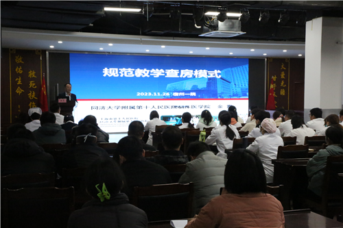 为提高教学查房质量,规范教学查房流程,加强师资带教能力,进一步夯实临床教学工作。余震教授还以《规范教学查房模式》为题,为在座教师上了一堂生动实用的理论课。他从教学查房思路、如何围绕患者开展、如何突出重点、如何增加互动效果等方面进行了详细讲解。