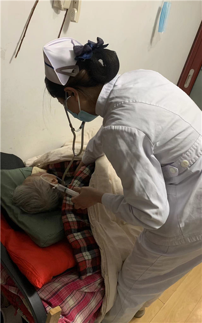 而能够得到患者家属高度赞赏的原因,是前一天我院神经内二科护士长阚家林在“护士上门”平台,接到了一个更换胃管与采血项目的派单,便第一时间与预约人取得了联系。了解到患者为高龄老人,因为长期卧床且进食困难,需植入胃管和抽血检查老人的营养状况,恳切希望护士能尽快到家中进行胃管植入和静脉采血。阚家林护士长为了尽快给老人换胃管,不耽误老人吃早饭,第二天一早天还未亮,阚护士长便冒着严寒赶到了老人家中开展“护士上门”服务,她到达后一边评估老人的基本情况,一边为家属科普居家养老的相关知识,阚家林护士长的专业素养和细心讲解,让老人和家属赞不绝口。
