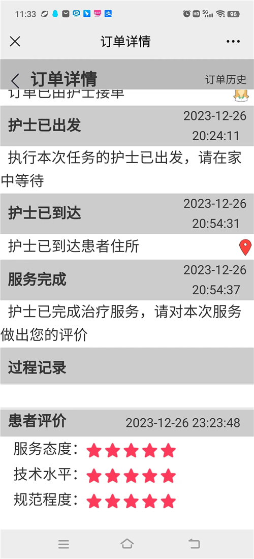 12月26日晚19点30分,我院“护士上门”服务平台接到一名患者家人的网上订单,需要为一位长期卧床的老人更换鼻饲胃管,考虑到患者情况特殊,平台值班的护理部副主任苏利平第一时间给予回复“胃管出现了什么问题?老人现在的情况怎么样?您的住址在哪?……”问清情况后,立即开始派单。当平台联系到薛影护士长时,她正在城郊陪父母吃饭,接到通知后她没有任何犹豫,立即联系患者家人,仔细询问了情况。当了解到老人的胃管因堵塞不能进食,怕老人受罪、家人担心,“放心,我马上就到”薛影护士长的一句话,给患者的家人吃了一颗定心丸。晚上20点24分,薛影护士长赶到了患者家中,仔细查看了老人的情况,认真研判胃管堵塞原因,准备就绪后立即更换了新胃管,试验通气、固定鼻贴,并向家属交代了注意事项。“换好了,下次再有什么困难和需要,可以及时联系我。”临走时,薛影护士长给家属留下了自己的联系方式,患者家人感动万分,并发来感谢信,感谢她认真工作的责任心和心系患者的仁爱心,想病人所想、解病人所难,主动放弃自己的休息时间,上门为病人及时解决困难,消除了患者家人们的烦心事。他们非常感谢医院有这么好的“护士上门”服务平台,派出职业素养高的医护人员为患者上门服务。