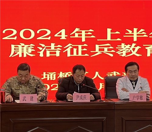 为切实做好埇桥区2024年度春季征兵体检工作,确保健康合格的优秀青年参军入伍。1月24日,在埇桥区人武部和埇桥区卫健委的指导下,埇桥区征兵体检暨廉洁征兵教育业务培训会在我院召开,会议由我院医务部部长付涛主持,埇桥区人武部部长武建、埇桥区人武部副部长彭磊、埇桥区卫健委副主任尹成庆、我院副院长户学敏及全体征兵体检工作人员参加会议。