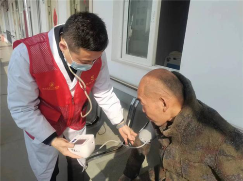 “老太太,这些药的使用方法您一定要切记,要按时按量...”“春天到了,要记住要远离过敏源!”3月10日上午,我院呼吸一科支部组织呼吸危重症医学一科骨干医护人员,在支部书记王海龙同志的带领下,携带常用药品和心电图、血压计、血糖仪等医疗检查设备,来到埇桥区灰古镇付湖敬老院开展义诊活动,为孤寡老人送医送药送健康。