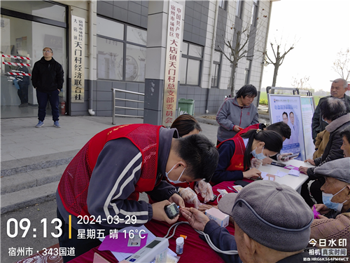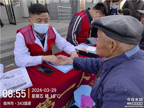 同时,志愿者们还向大家宣传急救技能及脑卒中的防治知识、慢性病管理以及定期体检的重要性。活动现场,村民们络绎不绝,医疗专家们细致的检查、暖心的服务,更是得到了村民们的认可,村民纷纷表示“实实在在为百姓办实事,还得是宿州市第一人民医院!”