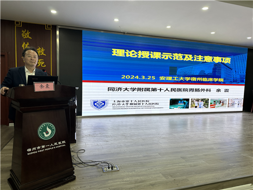 同时,为进一步提高医院师资队伍整体素质和水平,当天下午,余震教授还以《理论授课示范及注意事项》为题,为医院各教研室、参与授课的老师们进行了专题培训。