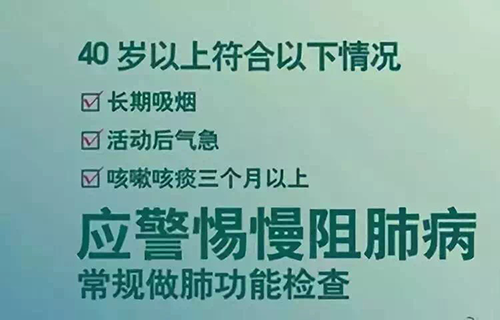 1、长期吸烟者。如果吸烟时间长,或者吸烟量大,不管年龄多大,都应该检测一下你的肺功能。吸烟可引起支气管炎和肺气肿,导致肺功能降低,发展为慢性阻塞性肺疾病。还有长期吸食二手烟的人群也是需要注意的。肺功能检测可早期发现肺功能减低,有助于预防慢性阻塞性肺疾病。