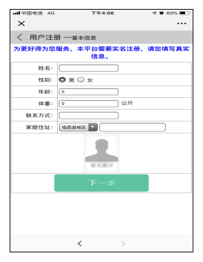 4、进入注册页面后,请按要求填写您的个人信息,医疗服务是一项很严谨的操作,医护人员会根据您填写的资料判断您是否适合相应的服务,请务必填写真实的信息。