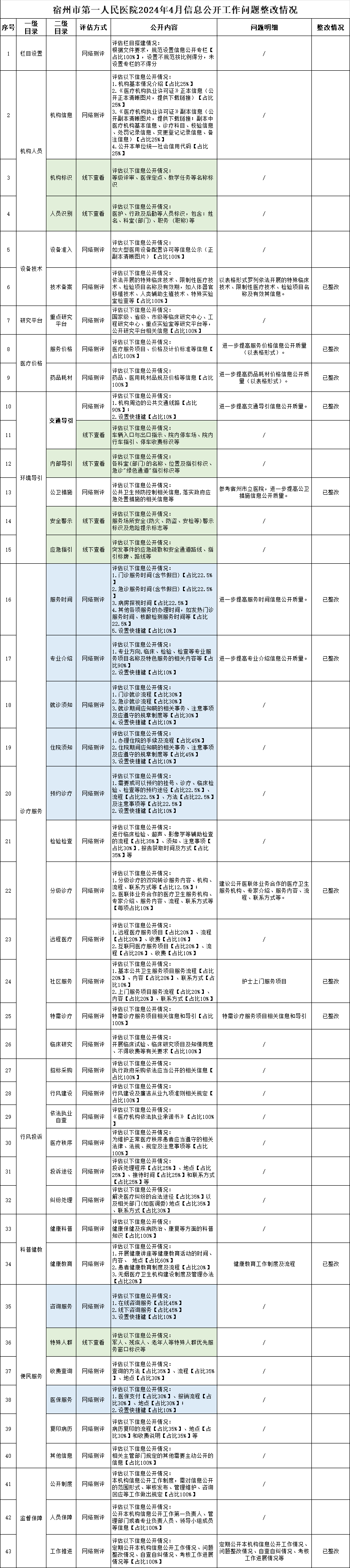 宿州市第一人民医院2024年4月信息公开工作问题整改情况