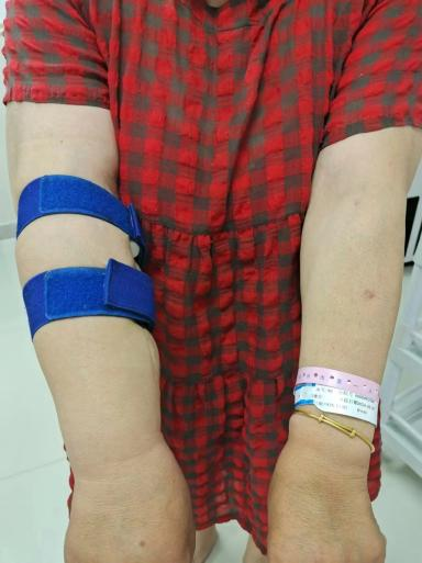 患者郑女士,今年48岁,维持性血液透析4年余,右前臂肿胀3月入院。患者内瘘侧肢体严重肿胀,透析过程中静脉压偏高,下机压迫止血困难。