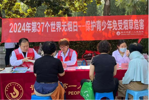 为进一步增强全民健康意识,深入开展控烟宣传教育,持续巩固无烟环境建设成果,保护青少年免受烟草危害。5月25日和31日,我院志愿者分别在雪枫公园广场和国购广场南门开展了“保护青少年免受烟草危害”第37个世界无烟日义诊活动。