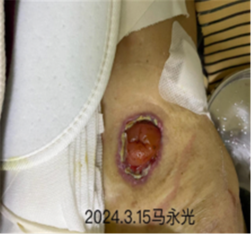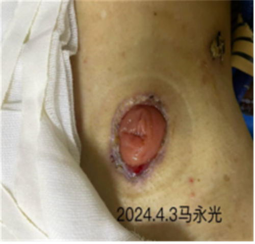 今年75岁的马老先生因腹部肿瘤入住胃肠外科,完善相关术前检查后,曾春辉主任主刀为患者行腹腔肿瘤扩大切除术治疗,术后留有结肠造口。因为老爷子高龄瘦弱,贫血外加低蛋白血症导致腹部造口愈合不良,造口出现皮肤黏膜分离。胃肠外科伤口造口专科护士樊影影通过对造口进行细致的评估,制定出了针对性的治疗方案,予以清除造口周围腐肉后选择合适的造口附件产品,同时应用健康教育护理干预方式,对患者加强营养指导及心理疏导,经过多次换药后,老爷子的造口皮肤黏膜分离已经逐渐愈合。