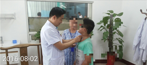 上图是一10岁左右的小男孩,从小就有支气管哮喘,常年使用激素类喷雾剂控制症状,无法根治。尤其到了冬天,经常因受凉犯病,经常去北京、上海各大儿童医院看病,家人为此焦头烂额,经过熟人介绍,我院根据其体质给予贴了“天突、肺俞、定喘、肾俞”穴,部分穴位有起泡反应,嘱患者注意避水,防止感染,平稳度过治疗期,经过治疗后,患者哮喘症状得到明显控制,偶尔使用激素类药物,身体情况也得到明显改善。