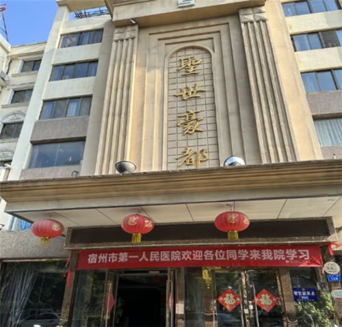 宿州市第一人民医院租用临近的盛世豪都宾馆2层,可满足约180人住宿需要,且男女生分楼层住宿,配有专职宿舍管理员,设有自习室,配备洗衣机、淋浴间、空调、网络等生活设施,建有食堂,满足培训学员的生活需求。