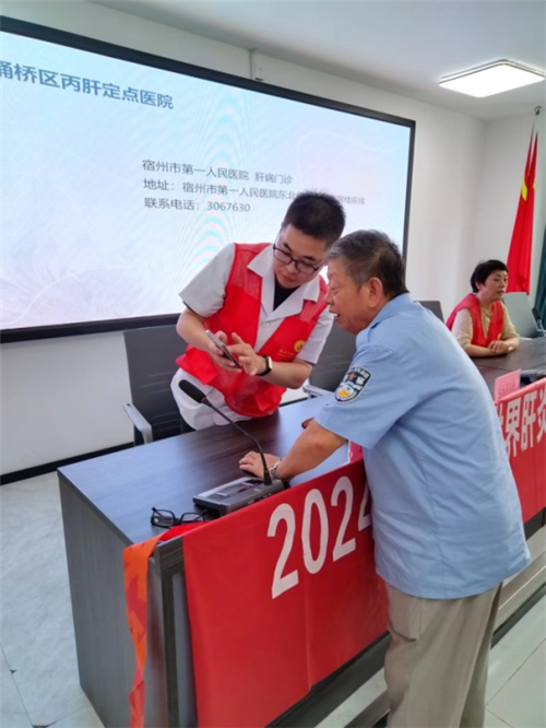 在健康讲座结束后的义诊环节中,医生们耐心且细致地解答了居民提出的各类健康问题,并依据每个人的具体情况,给予了个性化、科学且合理的健康指导与建议。与此同时,为了给肝病患者的就医提供便利,医生们告知大家埇桥区丙肝定点医院肝病门诊的所在位置,以及国家针对丙肝患者治疗出台的优惠政策等信息,确保患者能够及时获取必要的治疗。