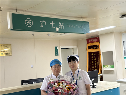 上午十时,分管护理工作的李秀君副院长、护理部蒋翠玲主任带领护理部成员手捧鲜花来到病房,代表医院向刘欣荣表达了诚挚的谢意,并献上鲜花与美好祝福。