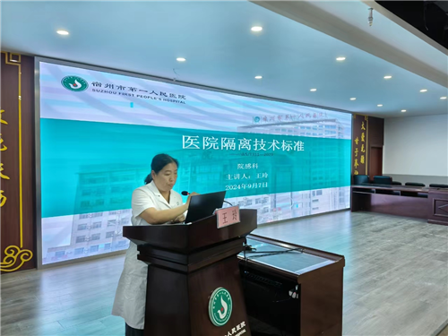 为进一步强化医院感染预防与控制工作,确保医疗质量与安全,针对本年度医院感染管理专项检查中暴露出的问题,9 月 20 日,我院医院感染管理科举办了埇桥区医院感染管理新进展继教培训班。来自本院以及区直医疗卫生单位、乡镇卫生院、社区卫生服务中心、社会办医院、门诊部、诊所等的近 200 名医务人员参加了此次培训。院感科郭爱玲主任主持并致开班词。