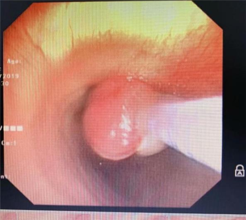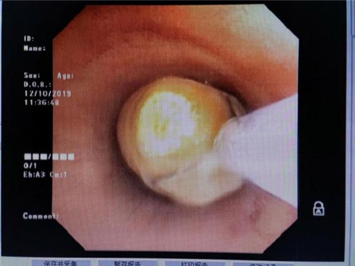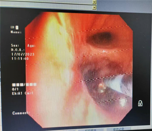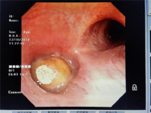 经支气管镜气管异物取出术(左主支气管花生米1.5cm)