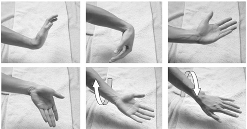 • 自主地进行手腕的屈伸、旋转等全方位活动,每个方向活动 10 - 15 次。