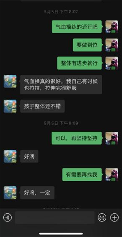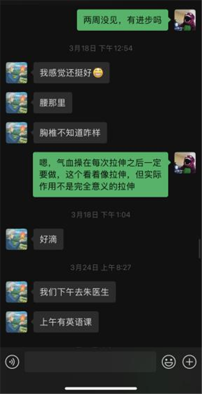 时间到了 2024 年 3 月 2 日,由于小尹学业负担较重,没能按时前来就诊。据家属反馈,小尹的高低肩已经有所改善,整个后背的紧张感也有了一定程度的缓解。此次处理的患肌为双侧腹直肌、腹外斜肌、小腿三头肌、胸锁乳突肌、斜方肌。治疗结束后,小尹并没有出现不适的情况,医嘱与之前相同,医师还教授了她气血操,并通过微信进行随诊,以便随时了解小尹的康复情况。