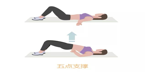 五点支撑法:采取仰卧位,双膝微微屈曲,以足掌、双肘以及肩部作为支点,用力抬起骨盆,直至肩部、腹部、膝关节处在一条直线上,然后再缓慢放下,这样一起一落算作一个动作,连续进行 20 - 30 个为一组,一天可以做 2 - 3 组。该方法对锻炼腰背部肌肉很有帮助。