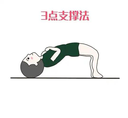 三点支撑法:它是在五点支撑法的基础上演变而来的进阶动作,具体做法是将双臂放于胸前,仅依靠头和双足来支撑身体抬起腰部,锻炼的方式以及组数与五点支撑法大体相似,其主要作用是进一步强化腰背部肌肉力量。