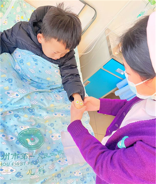 静脉穿刺对于孩子们来说,往往是最害怕的环节。为了减轻孩子们的痛苦,经验丰富的护士们在操作时手法精准、动作轻柔,仿佛在进行一场精细的艺术创作。同时,她们还发挥着无限的创意与耐心,一边进行穿刺,一边用生动有趣的故事吸引孩子们的注意力,让他们暂时忘却紧张与疼痛。科室里还准备了五颜六色、形状各异的小贴纸,这些看似简单的小物件,却在治疗过程中发挥了大作用。“宝宝真勇敢,奖励你一朵漂亮的小花!” 护士们温柔的鼓励声伴随着小贴纸的奖励,不仅有效缓解了患儿的哭闹情绪,还拉近了与患儿及家属之间的距离,让治疗过程变得更加顺利,提高了孩子们的治疗依从性。