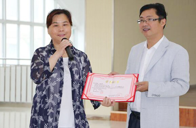 最后,重症医学科护士薛萌萌为福利院的职工培训了急救技术心肺复苏,福利院的职工们认真学习,受益匪浅。蔡先德主任代表受助儿童感谢了第一人民医院护理部的爱心奉献并授予荣誉证书。
