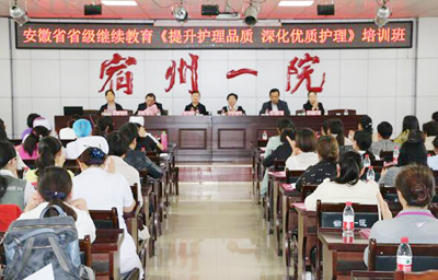 2016年5月21日,由我院护理部主办的省级继续教育项目——“提升护理品质 深化优质护理”学习班在我院门诊部八楼会议室举办。出席开幕式的有安徽省蚌埠医学院第一附属医院护理部主任李秀川女士;宿州市护理学会副理事长胡恒侠女士;宿州市埇桥区政协主席、埇桥区卫计委副主任姜涛同志;埇桥区卫计委医政科科长王蕾同志;宿州市第一人民医院党委书记王秉璞同志;宿州市护理学会常务理事、宿州市第一人民医院纪检书记支淑华女士。开幕式由支淑华书记主持。