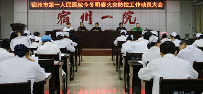 根据埇桥区卫计委《关于切实做好今冬明春安全生产工作的通知》(埇卫计办[2015]45号)精神,2015年12月24日下午,宿州市第一人民医院在门诊楼八楼会议室召开“宿州市第一人民医院今冬明春火灾防控工作动员大会。院领导孟令盘、王秉璞、孙建田、李秀君、支淑华和临床、医技、职能科室负责人等100多人参加了大会。院长孟令盘在会上做动员讲话,纪检书记支淑华主持。