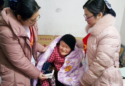 第二服务小组带着床上洗头盆、电吹风、电动理发器、指甲剪等物品,走进卧床老人家中,送温暖送爱心,让他们得到儿女般的关心,在寒冬腊月感受到丝丝暖意。