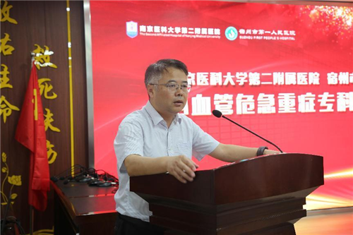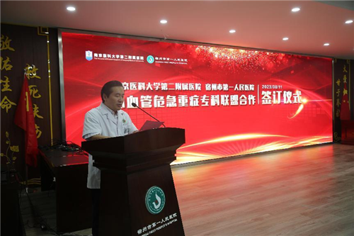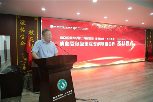 李庆国副院长在致辞中简要介绍了南医大二附院心脏外科的发展历程及在心脏外科病域的技术优势,他表示南医大二附院与宿州市第一人民医院心脏外科专科联盟协议的签订,是双方合作史上一个重要的里程碑,为今后双方开展心血管病专科共建,共同提升心血管病防治水平,更好的服务皖北百姓健康奠定了坚实的基础,南医大二附院将不遗余力地对宿州市第一人民医院进行适宜、有效的技术指导和支持。
