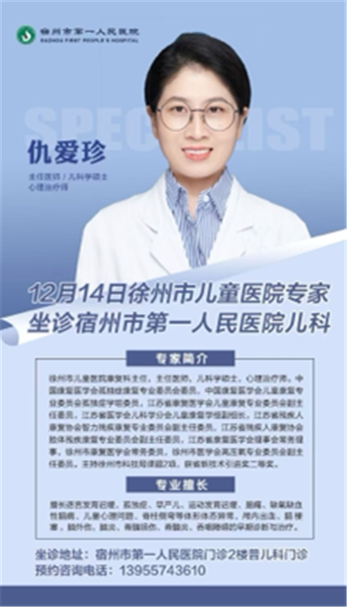 12月14日,我院联合知名专家徐州儿童医院康复科仇爱珍主任在本院儿科门诊成功举行坐诊活动。此次活动旨在为广大患儿家庭提供便捷、专业的健康咨询和诊疗服务,进一步普及儿童康复知识,提高社会对儿童健康问题的关注度。