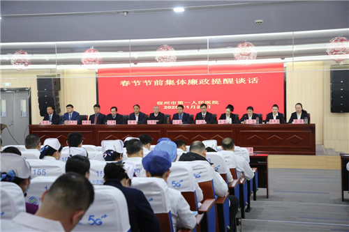 为持续推进全面从严治党,深入落实党风廉政建设,巩固中央八项规定精神成果,切实增强党员干部廉洁自律意识与拒腐防变能力,1 月 22 日下午,宿州市第一人民医院组织召开春节前集体廉政提醒谈话会。医院领导班子成员及中层干部200 余人参加会议。
