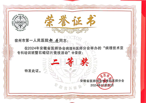我院病理科斩获安徽省石蜡切片比赛二等奖
