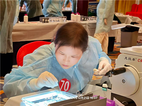 此次比赛内容丰富,涵盖了操作环节和阅片环节两大部分。在操作环节中,参赛选手需要使用自己准备好的胃、肠、扁桃体这三种组织蜡块,在规定时间内完成 HE 染色制片工作。期间,评委们会依据多方面的标准来进行严格评分,比如选手的操作流程是否规范、对仪器的使用是否准确无误,以及整个操作过程有无超时等情况。而在阅片环节,阅片专家则会以 “双盲” 的方式,针对选手所制作切片的质量以及染色情况进行细致评审并记分。