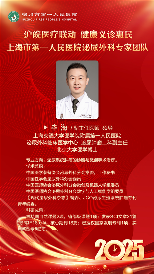 在长三角一体化发展的时代浪潮下,区域间的医疗合作正不断深入拓展,为广大群众带来了实实在在的健康福祉。2025 年 1 月 4 日,宿州市第一人民医院积极响应长三角一体化战略,与上海市第一人民医院泌尿外科携手开展惠民医疗活动,为我市医疗事业融入长三角一体化发展注入了新活力。