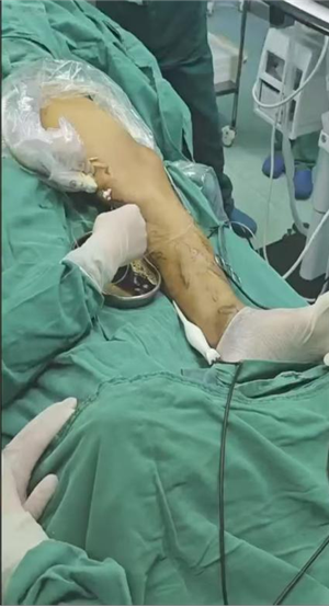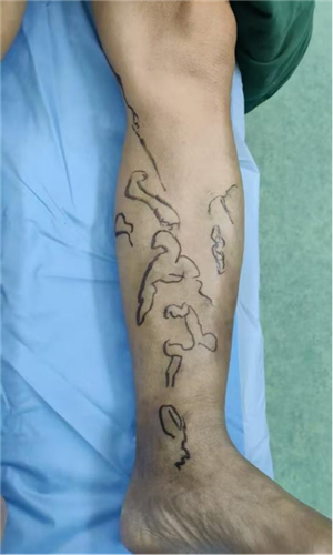 近期,我院心脏大血管外科收治了一位特殊患者,该患者不仅患有冠心病三支病变,同时左下肢还存在大隐静脉曲张问题。王波副院长带领医疗团队对患者病情进行详细评估后,精心制定了联合手术治疗方案,而首先要攻克的难题便是患者的 “蚯蚓腿”。