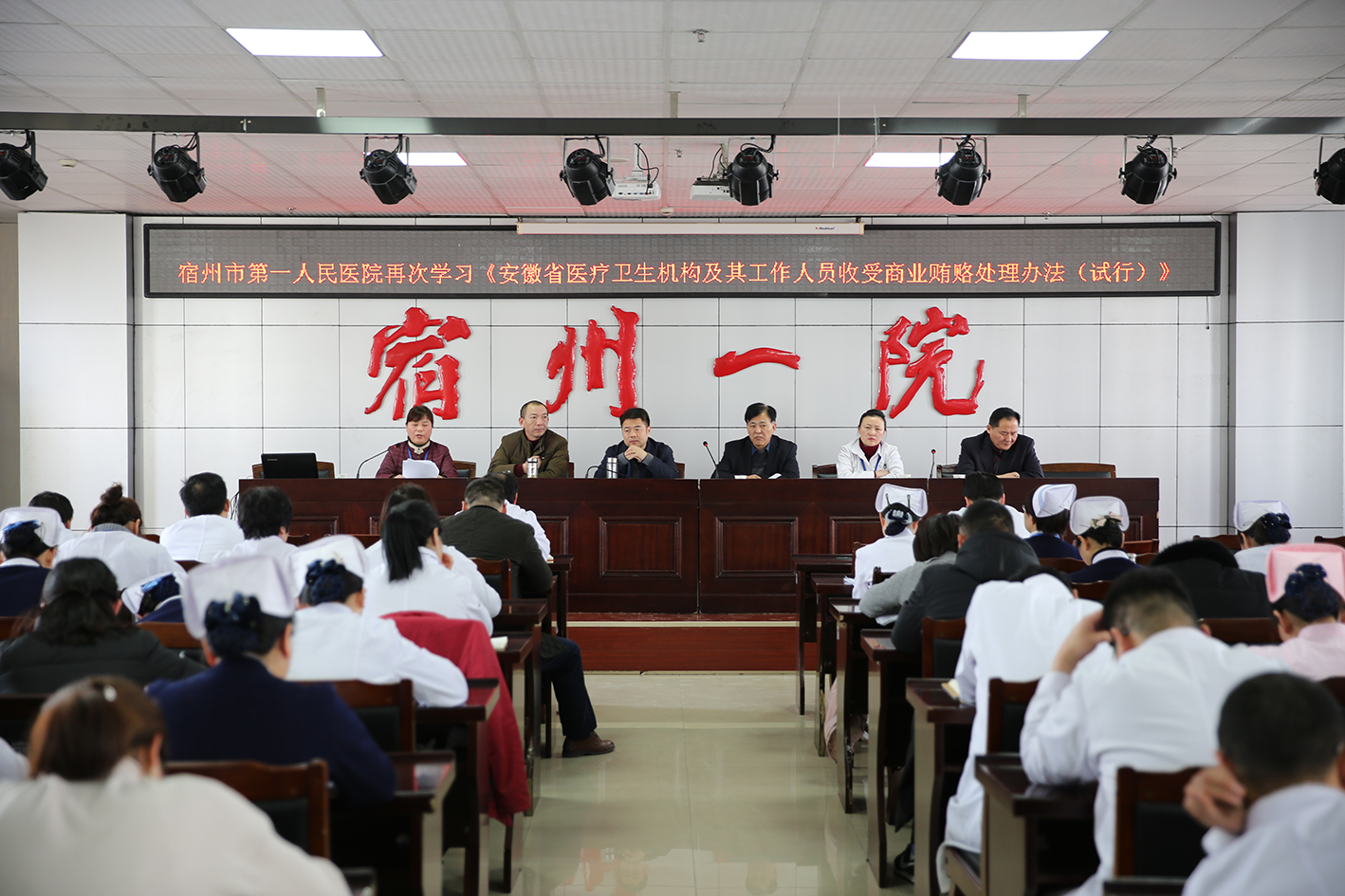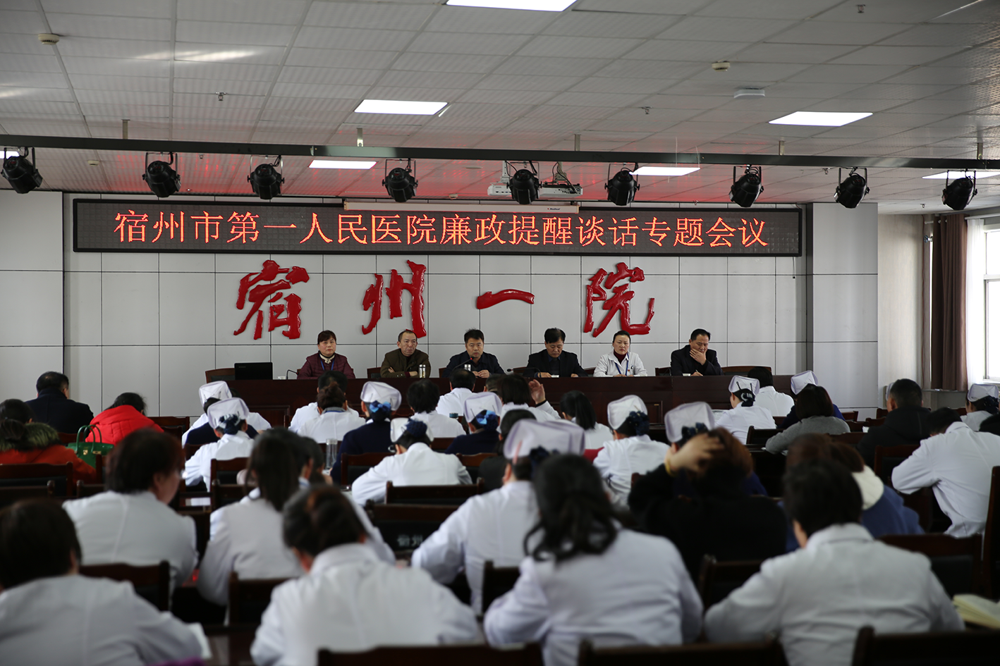 2月13日下午,宿州市第一人民医院党委在门诊楼八楼多功能会议室组织召开“宿州市第一人民医院廉政提醒谈话专题会议”。党委班子成员对200余名中层干部进行了集体廉政提醒谈话。