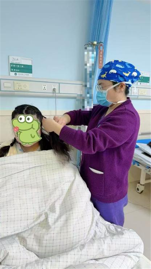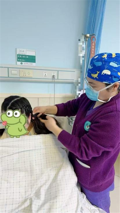 产前,助产士会像知心好友一样,为产妇精心编发。轻柔的动作安抚着产妇紧张的情绪,让紧绷的神经渐渐放松。每一缕发丝在助产士手中巧妙交织,编织出的不仅是美丽的发型,更是一份安心与慰藉。对于即将经历分娩的产妇来说,舒适与自信至关重要。整洁的编发让产妇在分娩时更加清爽自在,也增添了面对挑战的勇气。这一小小的举动,传递着一个坚定的信息:产妇不是一个人在战斗,医护人员会始终陪伴左右,关注着她们的每一个需求。