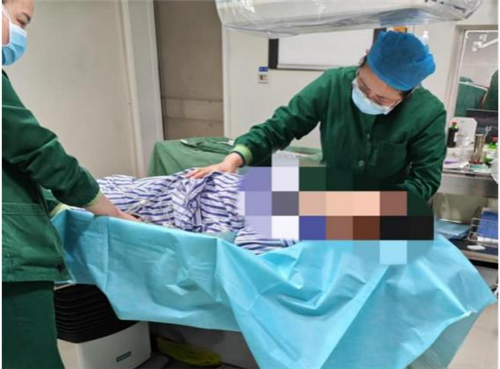 尤其在急诊 PCI 手术中,患者常因药物反应呕吐。此时,导管室护士会耐心细致地为患者擦拭呕吐物,即便被呕吐物喷溅到身上,也始终保持冷静与耐心,这种亲情化的护患交流贯穿手术全程。同时,巡回护士会及时向患者家属通报手术进展,以消除家属的担忧。