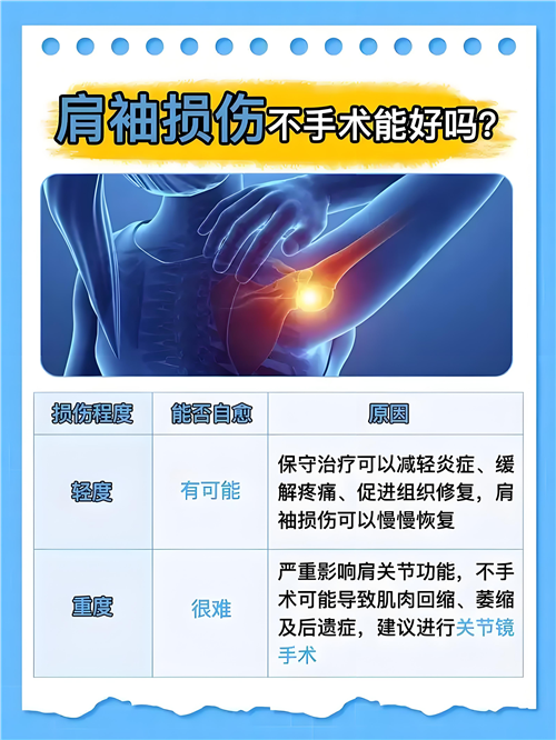 2.肩袖损伤:损伤较轻时可保守治疗,如休息、肩部制动,使用支具或吊带固定;药物和物理治疗缓解疼痛、促进恢复。损伤严重或保守治疗效果差时,需手术治疗,如肩袖修补术、肩峰成形术等。