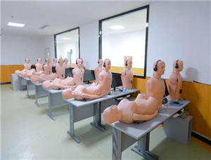 临床医学模拟培训中心是集培、练、考、赛为一体的全方位培训机构,按照助理全科培训基地要求配备了临床技能培训所需的各项模拟教学设备。实用面积600m2,现有专职管理人员 2人,设置模拟门诊、模拟病房、急诊急救室、内科训练室、外科训练室、模拟手术室、模拟产房等15间临床技能教室,可实施临床技能操作项目培训和考核。